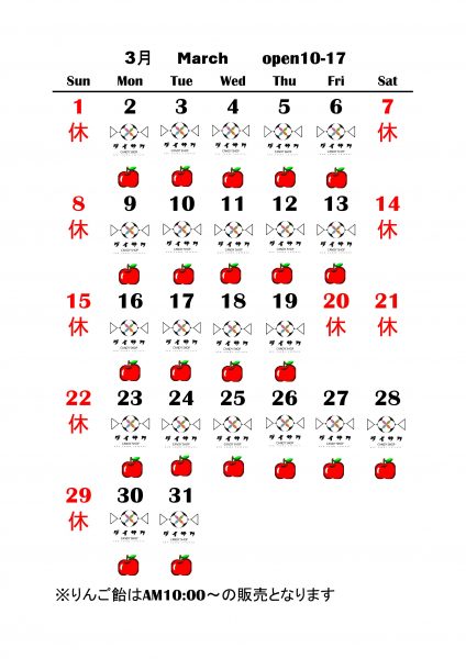 ダイサクショップはAM10:00~PM17:00までの営業となります。