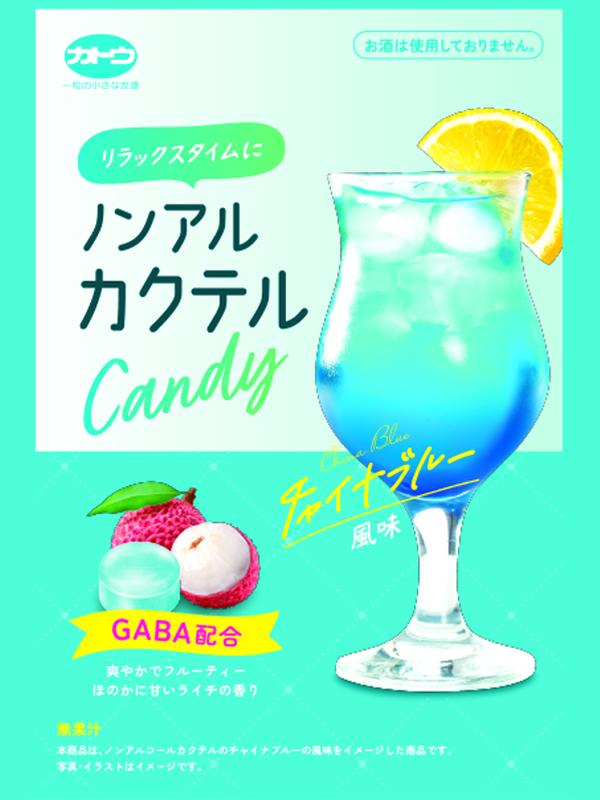 爽やかでフルーティーな、ほのかに甘いライチの香りがするノンアルコールカクテル「チャイナブルー」風味のキャンディです。